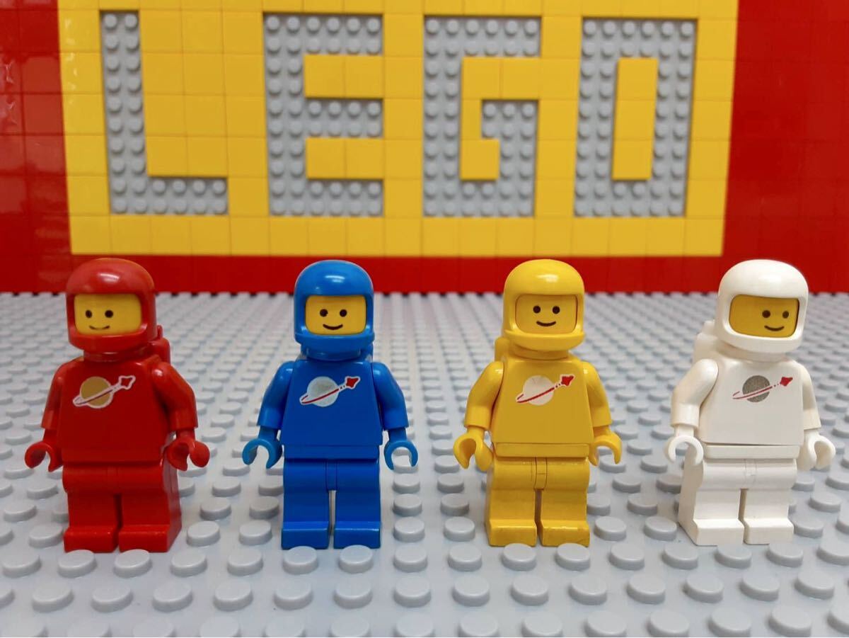> ☆1970年代~☆ レゴ ミニフィグ 初期 宇宙飛行士 パイロット 宇宙服 白色 青色 赤色 黄色 人形 宇宙シリーズ 月面探査 D91507