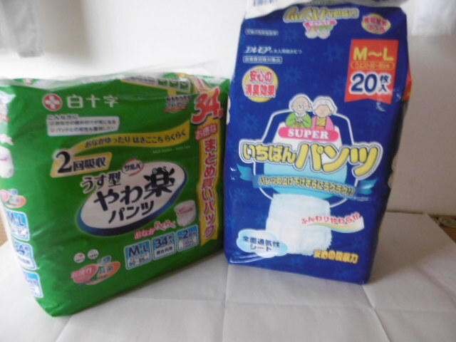 - 未使用 2個 白十字 サルバ やわ楽パンツ M-L 300ml 34枚/エルモア いちばんパンツ おしっこ約4回分 大人用紙オムツ
