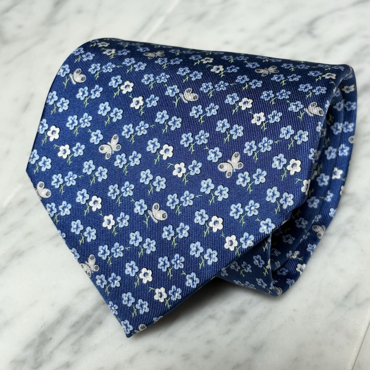 - 770円~ Ferragamo ネクタイ ネイビー ボタニカル柄 蝶々 (B5)