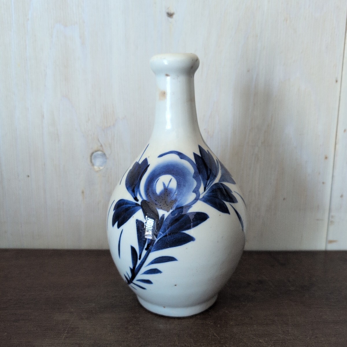 - 染付 花柄 花瓶 花器 花入 明治時代 骨董 時代物