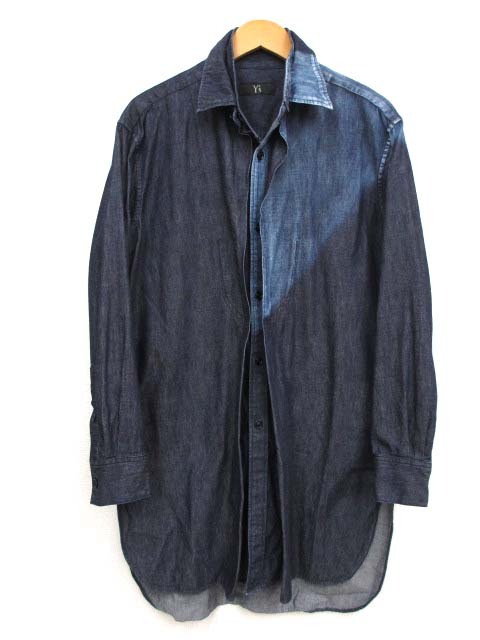 - 美品 Y's ワイズ 23SS ダブルカラー 長袖デニムシャツ 1 SPOTTED DENIM DOUBLE COLLAR SHIRT YZ-B02-006