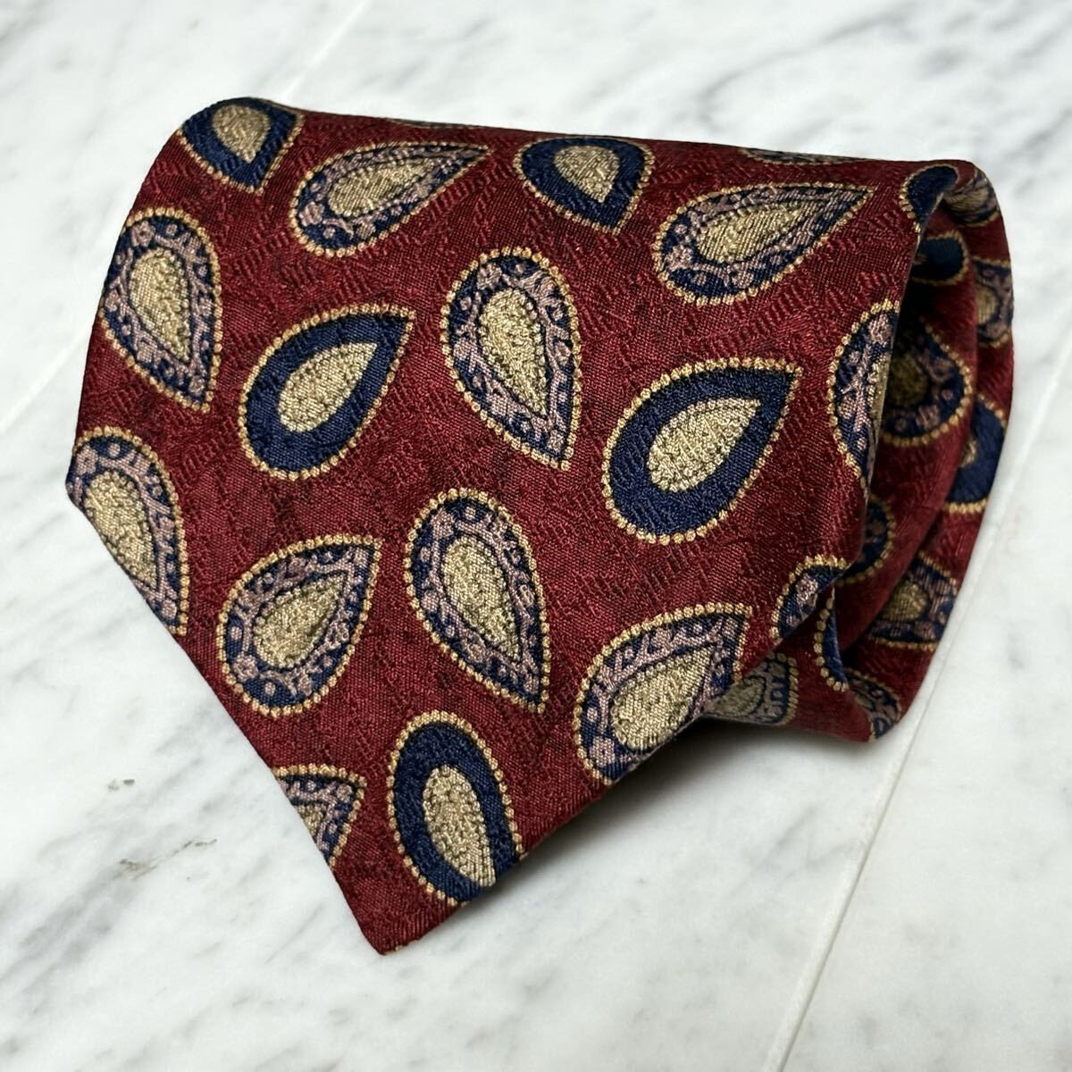 - 999円~ LANCEL ネクタイ レッド ネイビー ペイズリー柄 (R2)