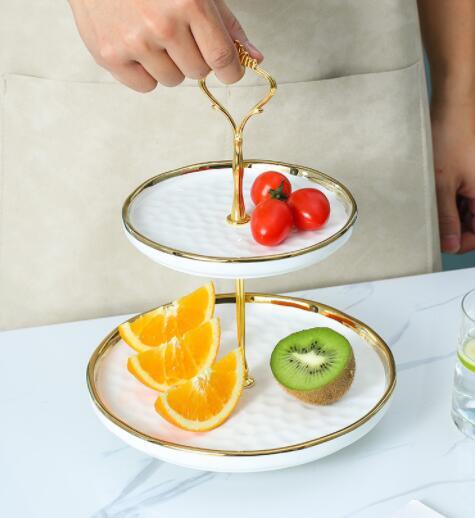 - 人気品2段ケーキスタンド アフタヌーンティーセット 陶磁器 フルーツ皿 スイーツ皿 デザート皿ホワイト