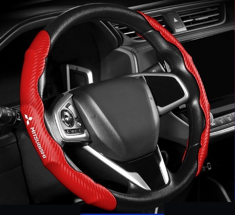 - 三菱 MITSUBISHI ハンドルカバー 車用 ステアリングカバー 滑り防止 ハンドル保護 取り付けが簡単 2本セット ☆カーボン調 3色選択可