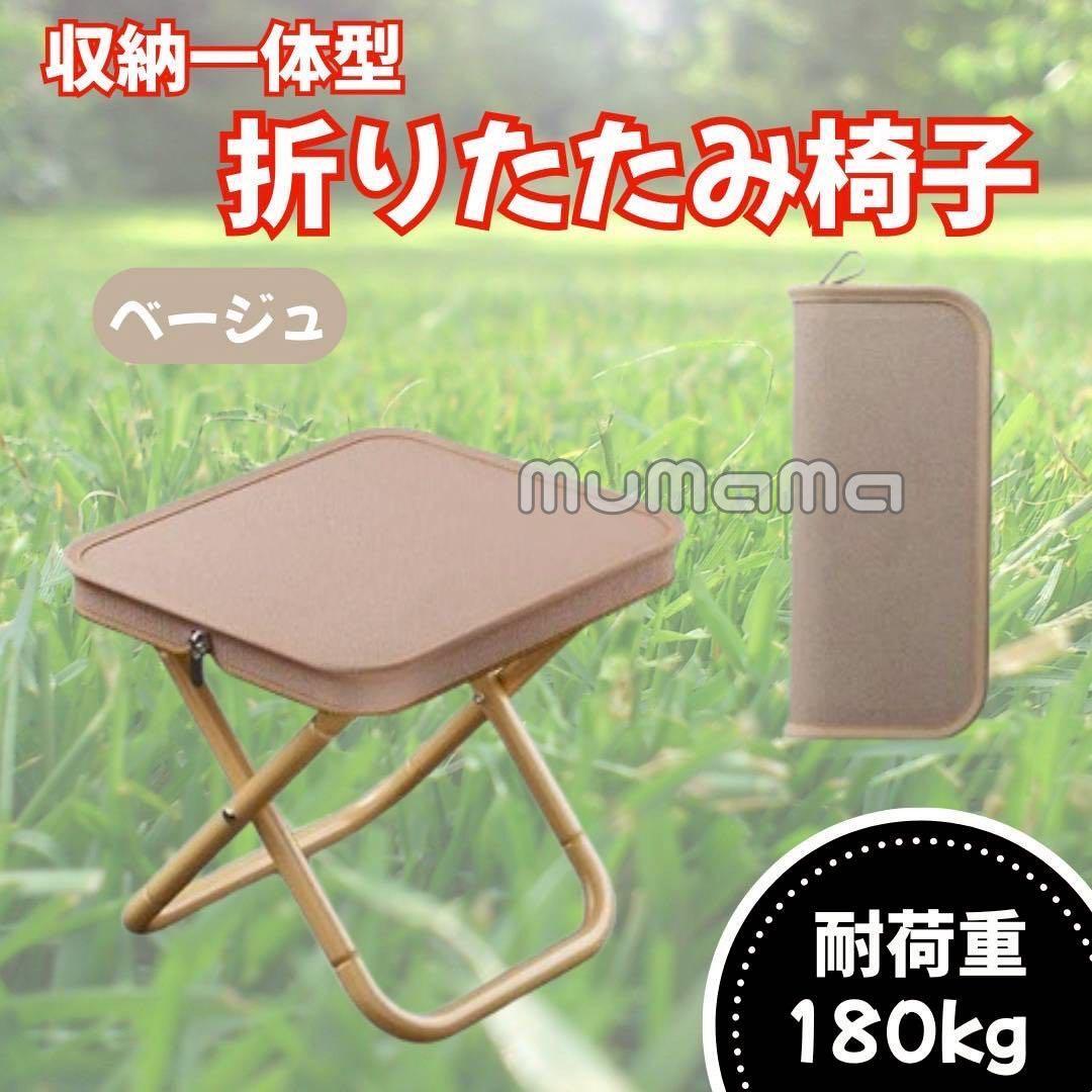 - 折りたたみ椅子 収納袋付き アウトドア・行列・運動会に便利! ベージュ