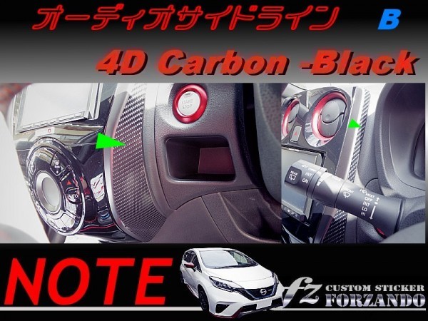 - ノート E12 オーディオサイドラインB 4Dカーボン調 ブラック 車種別カット済みステッカー専門店 fz