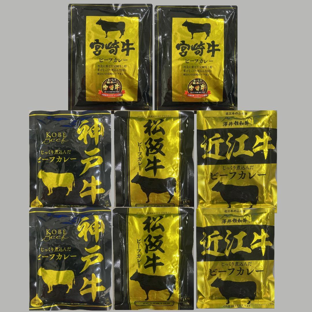 - 7【五大和牛 松坂牛 神戸牛 宮崎牛 近江牛ご当地カレー 8点セット】国産 和牛 カレー ビーフカレー レトルトカレー 即席