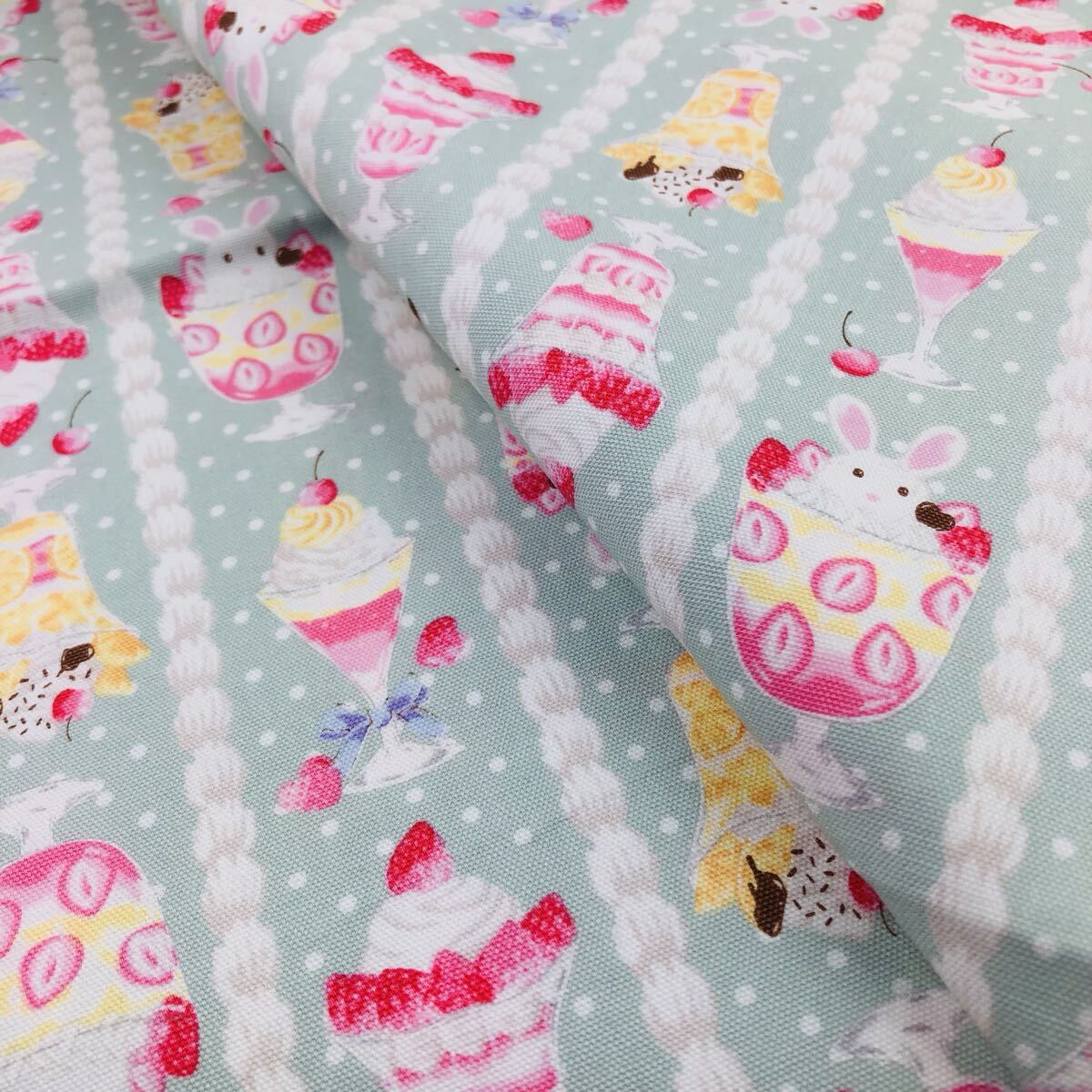- クラシカルモダン パフェうさぎ コットンオックス 1m いちご 日本製 キヨハラ 110×100 夢かわ オックス 生地はぎれ