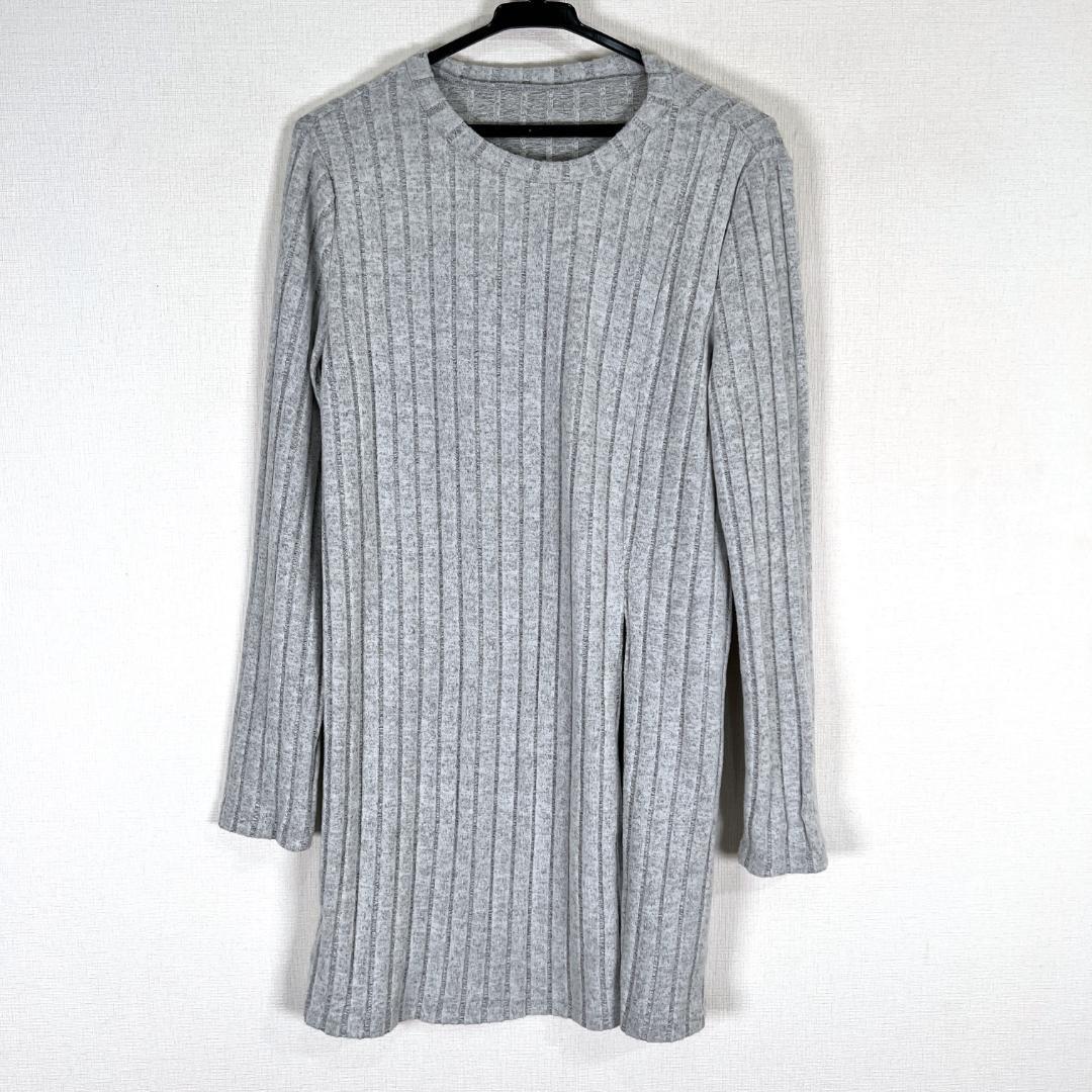 - 【SHEIN】シーイン グレー 長袖 リブニット セーター トップス 女性用 レディース Lサイズ【a026】