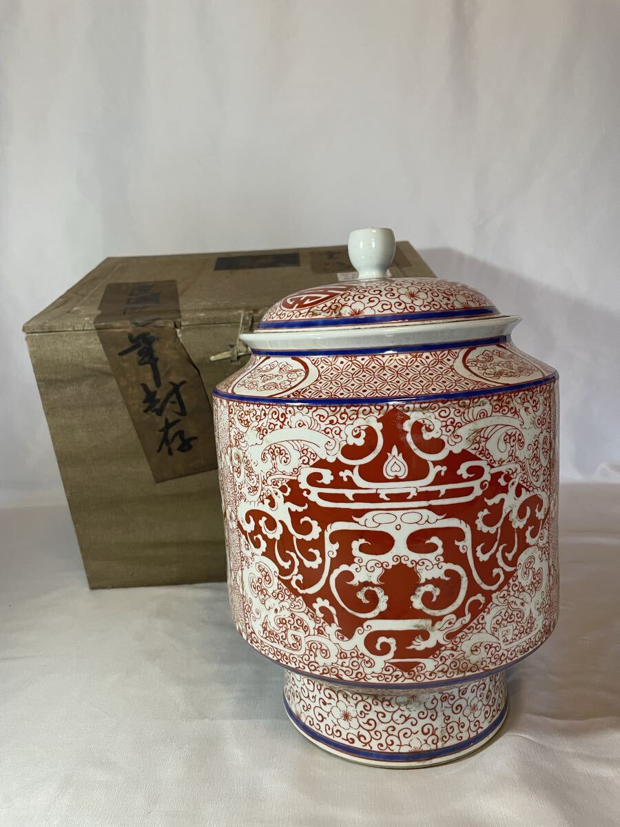 > 【故宮】釉裏紅 茶葉缶 約H30-W20cm 民国三十七年封存 清雍正年製 茶道具 香道具 煎茶道具 赤朱色