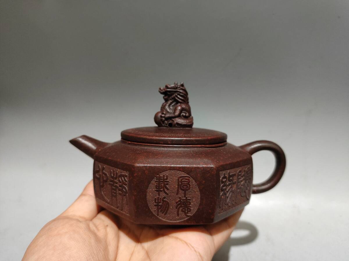 - 【超珍館蔵】紫砂壺 八方龍壺 顧景舟款 紅泥 茶具 茶道品 置物 賞物 古賞物 古董品 古美術品 時代物 旧家蔵出 稀少珍蔵品