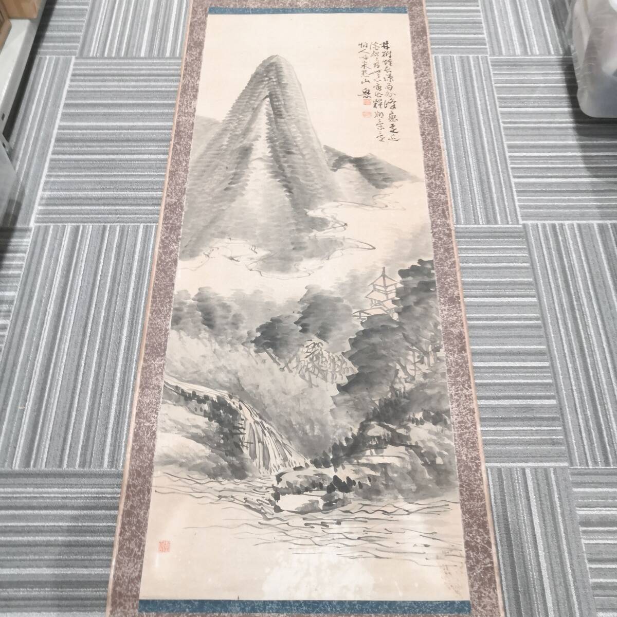 - 【9】山 風景 巻物 掛け軸 掛軸 日本画 骨董 日本書 伝統品 骨董品 時代物 年代物 美術品 芸術品 コレクション