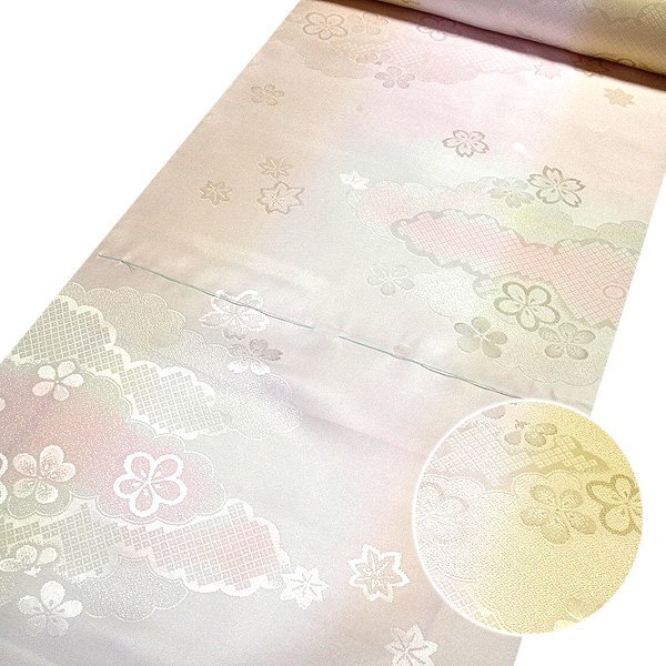 - [和楽屋] 訳あり■「振袖用 長襦袢」淡黄色×薄ピンク色 雲取り 桜 振りぼかし 袖ボカシ 反物 正絹 襦袢■