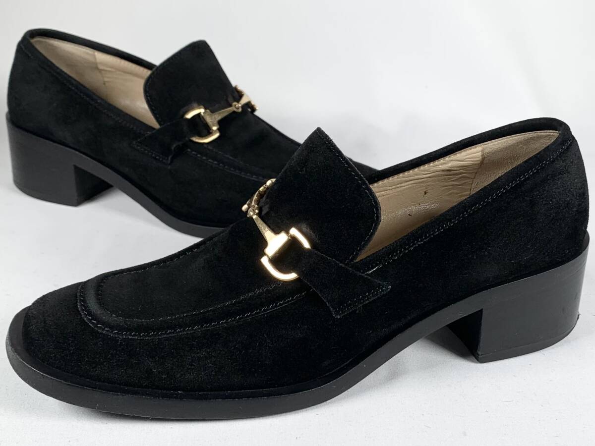 - 【正規】極美品 グッチ GUCCI 1001067 スエード レザー ビット ローファー ドレス ビジネス シューズ 革靴 レディース 35 1/2 黒 ブラック