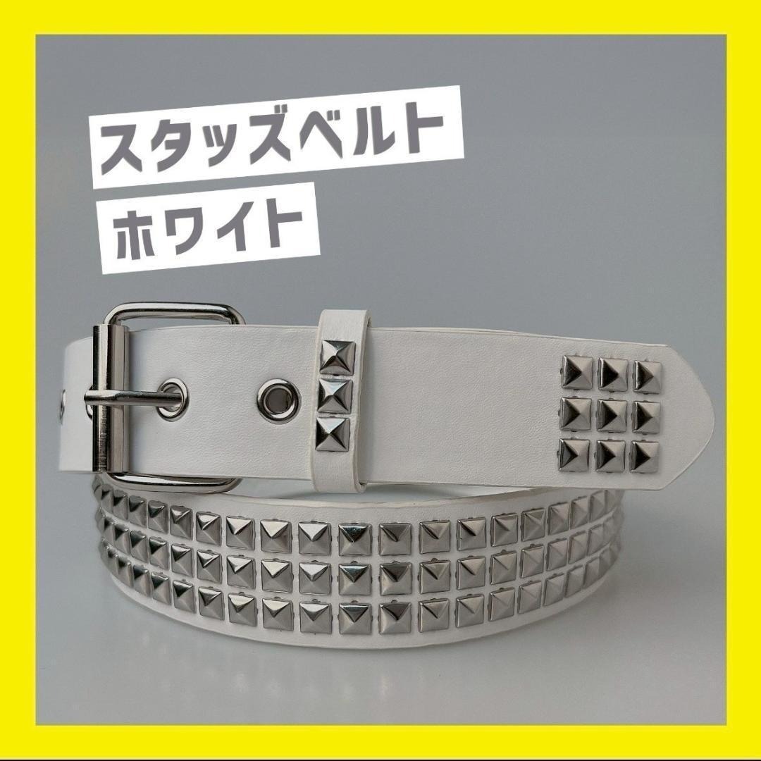 > ホワイト ベルト スタッズベルト スタッズ Y2K 男女兼用 ウエスタン レザー グランジ PUレザー アクセント ユニセックス