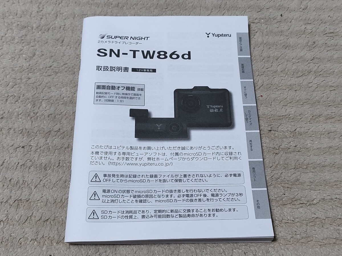> ユピテル YUPITERU スーパーナイト SUPER NIGHT 2カメラ GPSドライブレコーダー SN-TW86d 取扱説明書