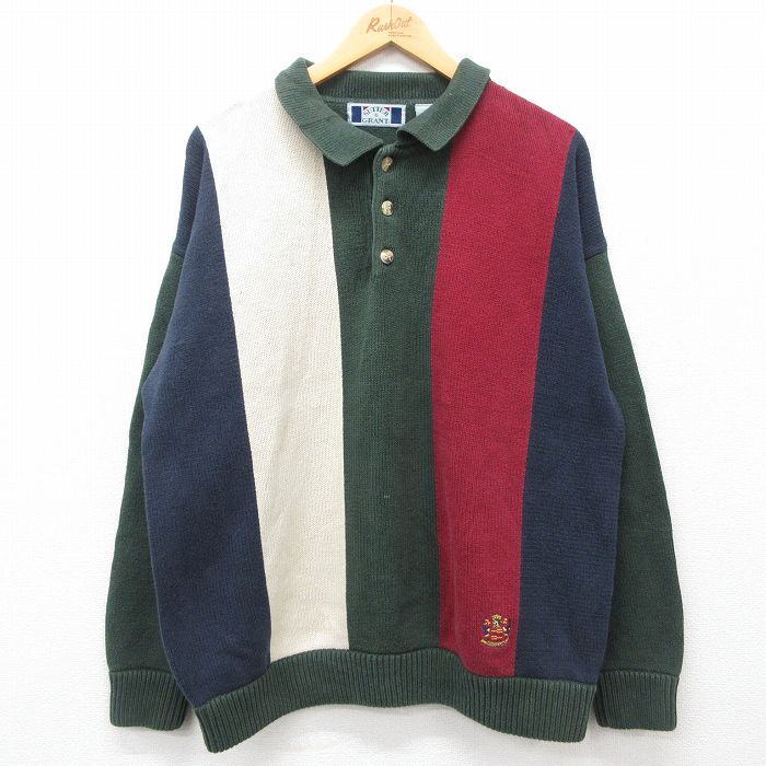 - XL/古着 長袖 セーター メンズ 00s コットン 襟付き 緑他 グリーン 25jan22 中古 ニット トップス