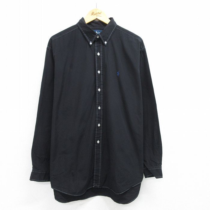 > XL/古着 長袖 ブランド シャツ メンズ 90s ワンポイントロゴ BLAKE 大きいサイズ コットン ボタンダウン 黒 ブラック 25may1