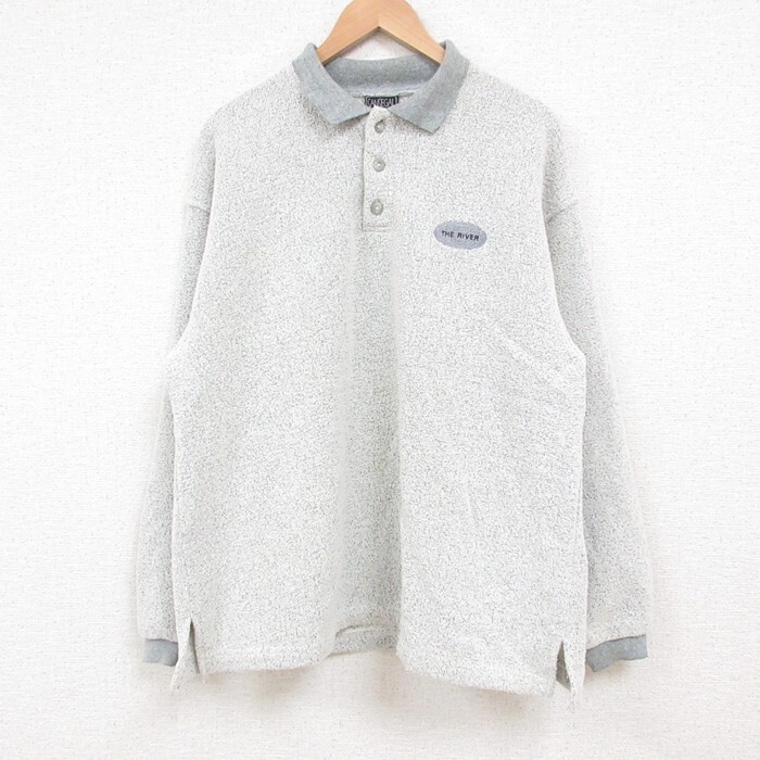 - L/古着 長袖 トップス メンズ 90s RIVER 襟付き グレー 霜降り 25may22 中古 スエット トレーナー