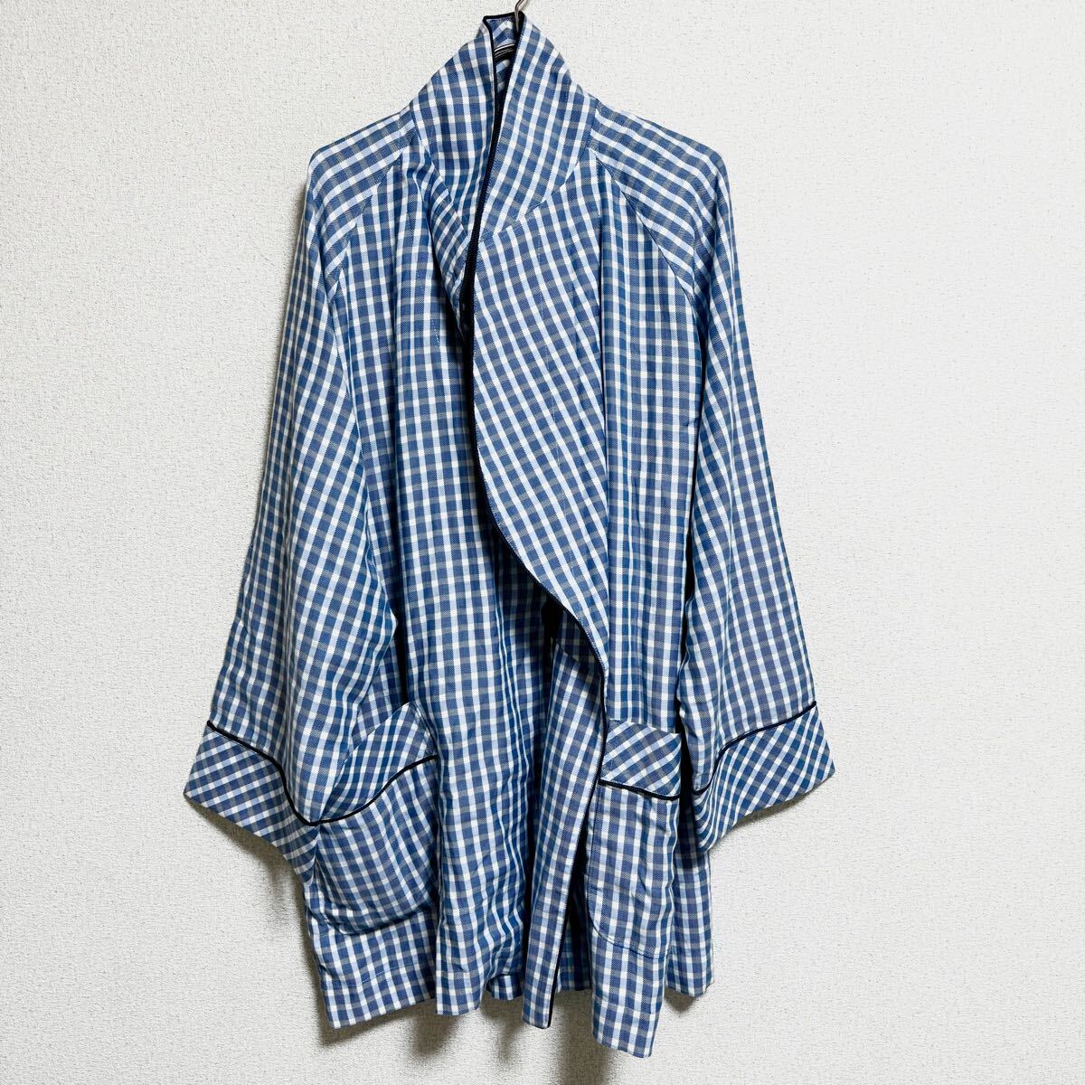 - Aquascutum アクアスキュータム ロングカーディガン はおり ローブ チェック ライトブルー メンズ サイズ M *DE