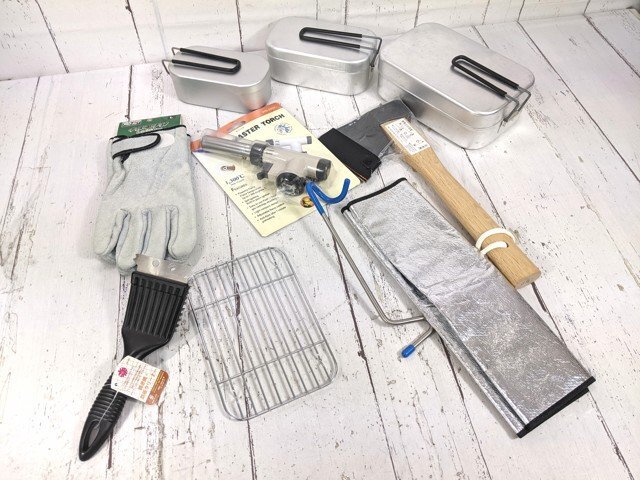 - 【8yt065】アウトドア キャンプ用品 メンティス◆手斧◆PRO-ACT 牛床革手袋◆トーチバーナー WANS◆B95♪