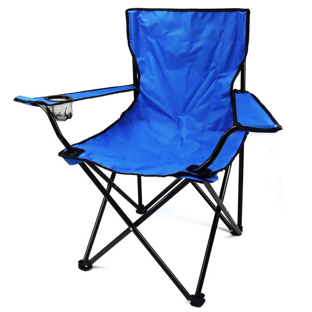 - アウトドアチェア ひじ掛け ドリンクホルダー付き 折りたたみ椅子 収納袋付属 キャンプ・レジャー用品 釣り 運動会 青色 1点