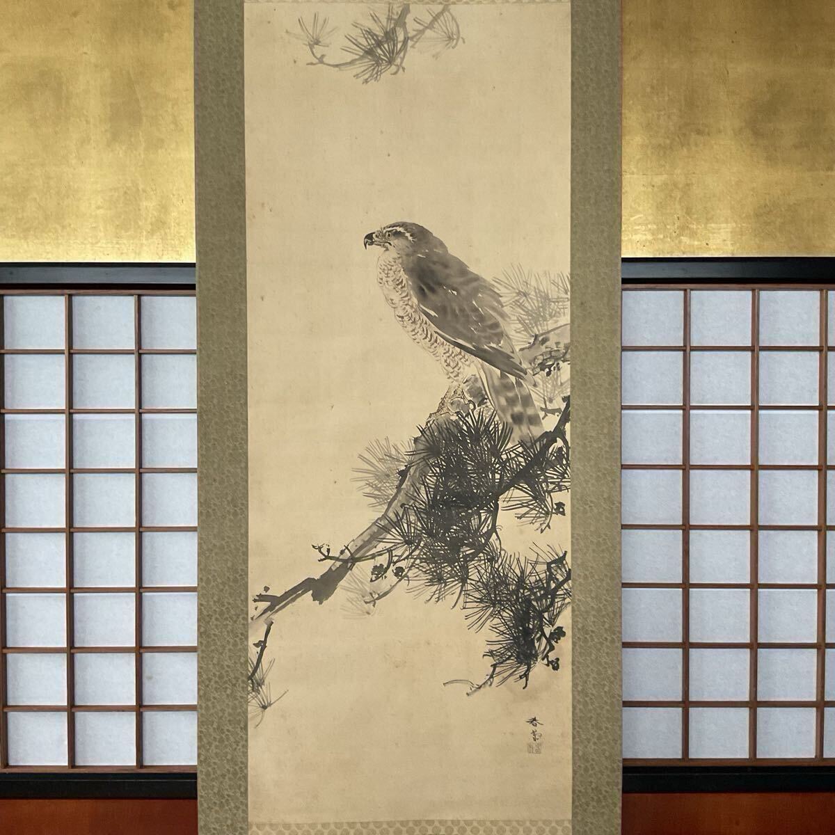 - 【真作】蔵出し【菱田春草『鷹図』絹本 肉筆 日本画 岡倉天心 橋本雅邦師事 長野県飯田市出身 共箱】