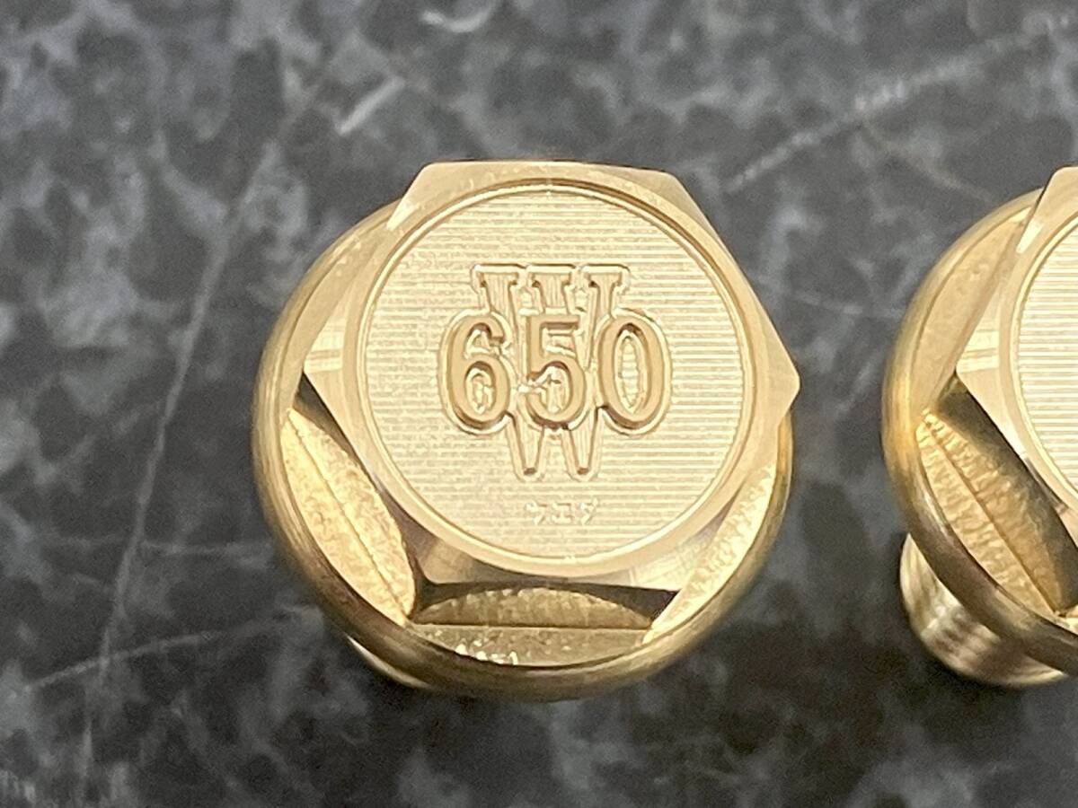 - ウエダレーシング 真鍮削り出し ナンバーボルト M6x20(W650)1セット (2個)650-W1 W2 650RS-W3 W650 W400 W800 メグロ URS ウエダ