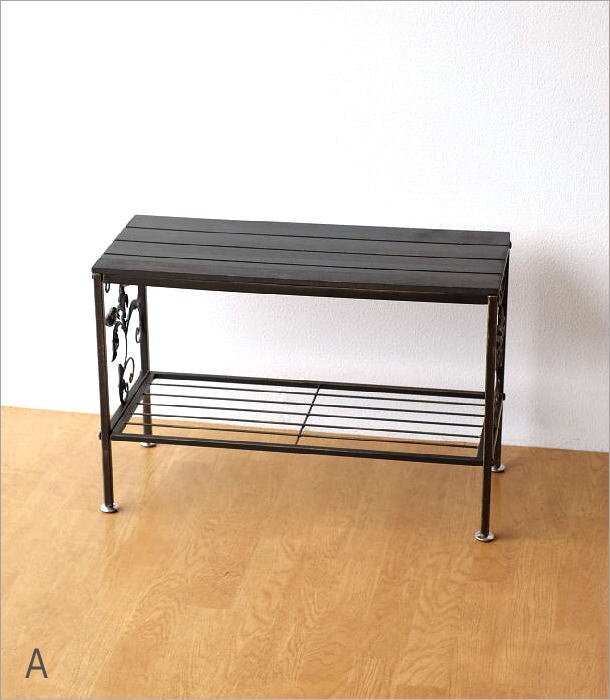- オープンラック ウッドラック おしゃれ 棚 シェルフ アンティーク調 アイアンの棚付き花台 【Aカラー】 送料無料(一部地域除く) pic2504a