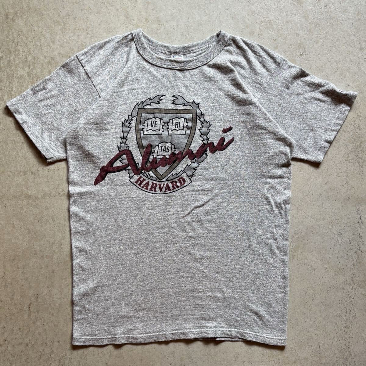 - 【USA製】80s Champion チャンピオン 半袖 Tシャツ Tee メンズ M 灰/Gray 88/12 カレッジ プリント アメリカ製 トリコタグ VINTAGE 正規品