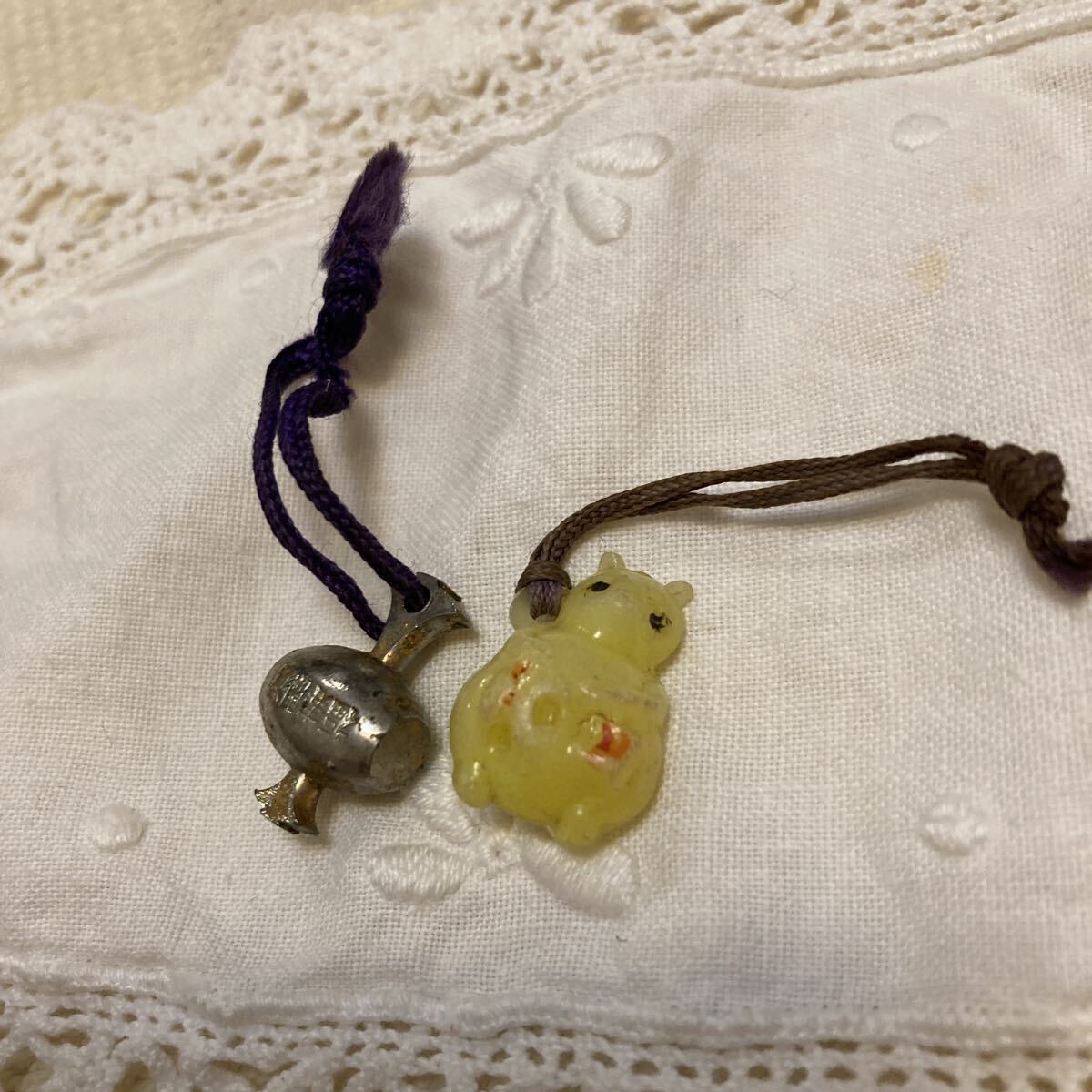 - 根付 2点セット プラスチック 動物 たぬき ネコ ? 金属 打ち出の小槌 遠州館山寺 福寿開運 難あり