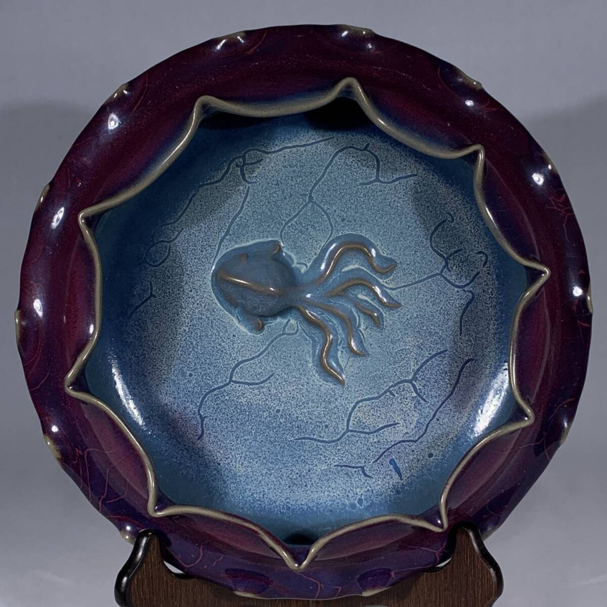 - 宋時代 古陶磁器 鈞窯 紫釉 魚紋 花口洗 水洗 文案 置物 擺件 時代物 古董品 骨董 旧家蔵出し 唐物 中国古玩 古美術品