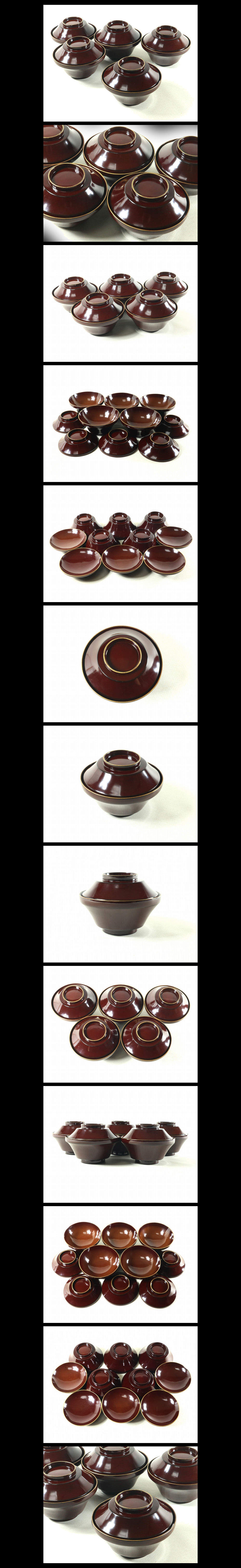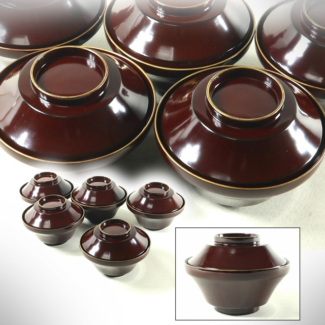 ●c059●【輪島塗吸物椀5客 富士形 栗色濃朱金縁 布着堅地】検お茶会煎茶道具茶懐石●西瓜●