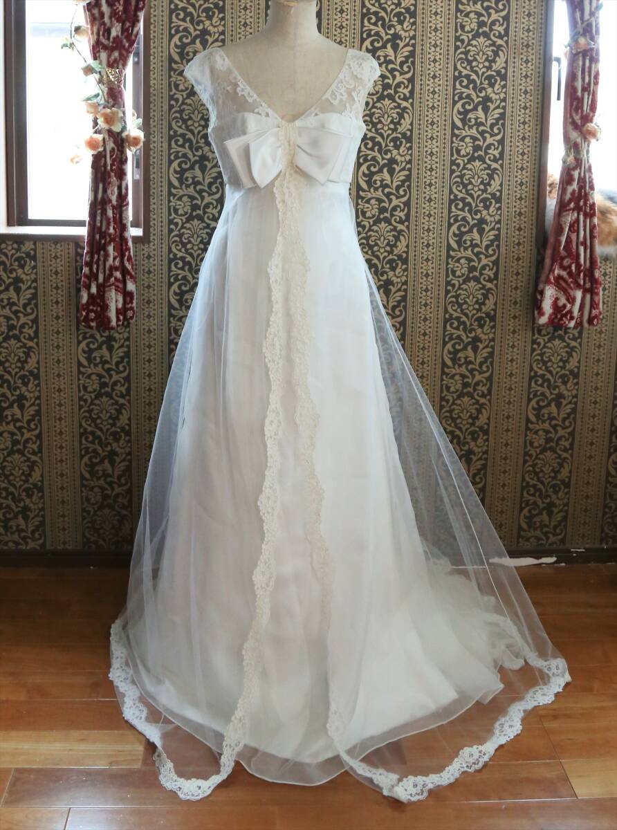 - 436難ありイタリア製ACQUA CHIARA高級ウエディングドレス9号11号M~Lサイズ程度エンパイアライン