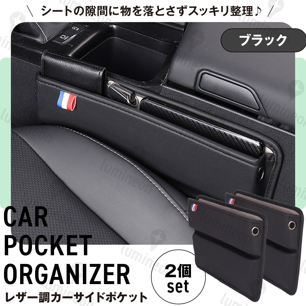 > 車 用 サイド ポケット 2点 セット USB穴 シート 収納 隙間 ボックス クッション 運転席 助手席 おしゃれ 荷物 小物入れ ゴミ箱 g183e 2