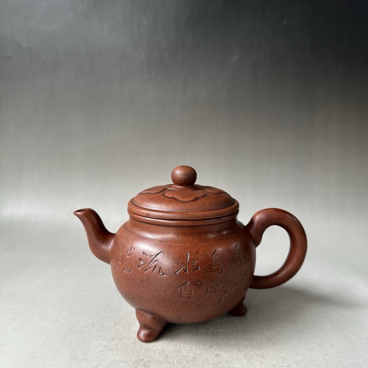 - 友人旧蔵 古原鉱紫砂製 三足如意壺 陳明遠款 紫砂壺 茶壺 急須 煎茶道具 茶道具 時代物 古董品 骨董 旧家藏出 唐物 中国古玩 古美術品