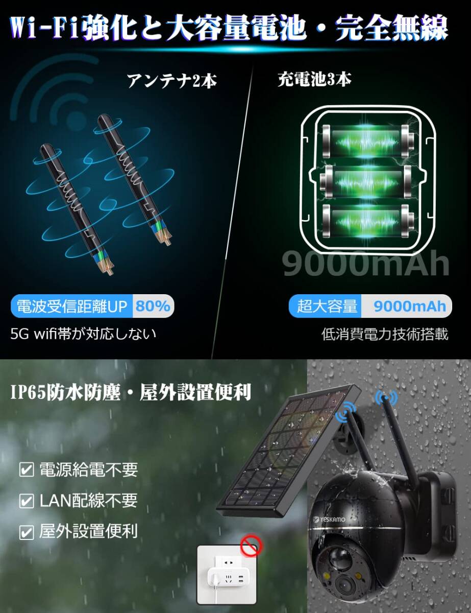- 半永久録画 360°全方位防犯カメラ 太陽光給電