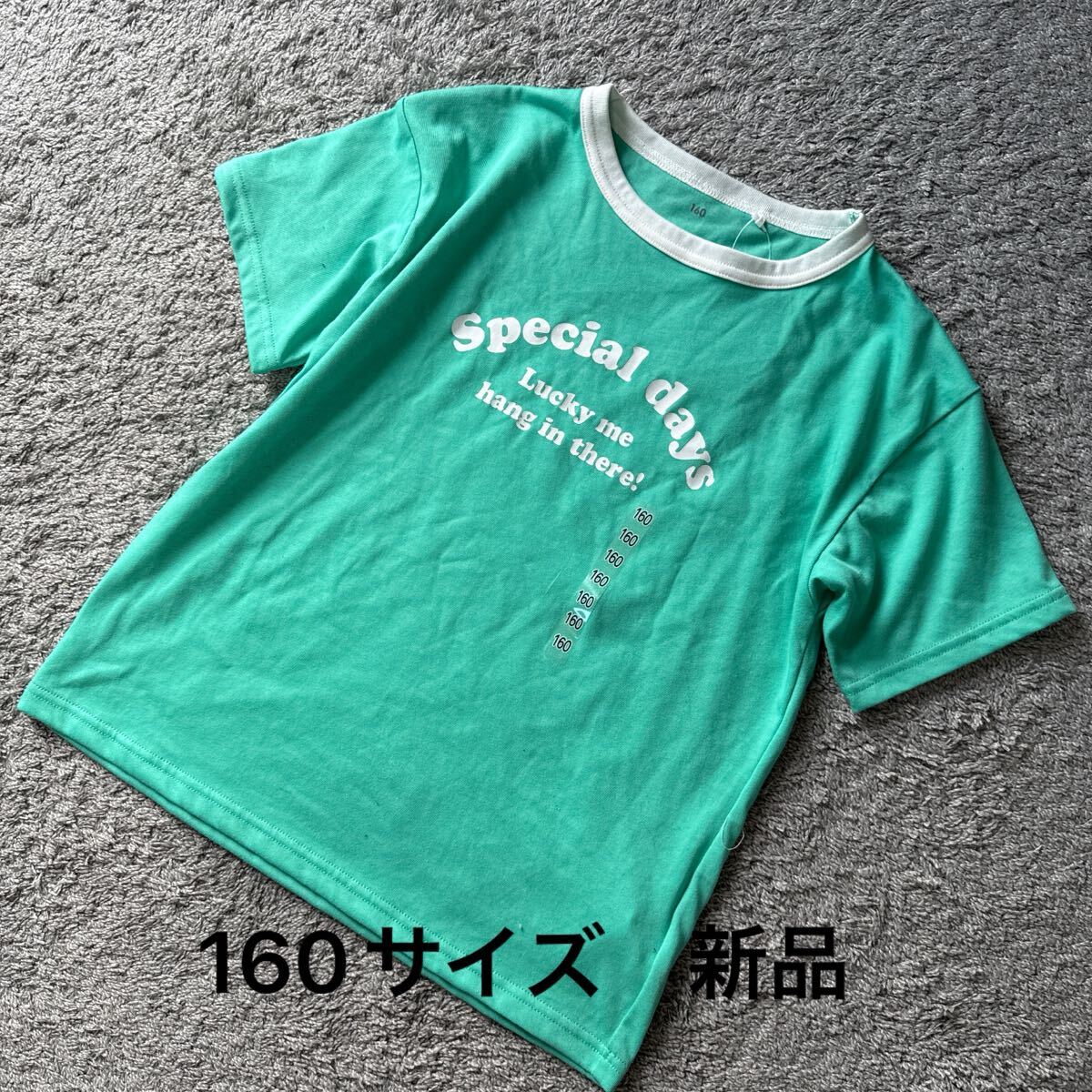 > こども服 吸汗速乾接触冷感リンガー衿ロゴプリント半袖tシャツ緑160★ゆうパケット配送可能★新品52