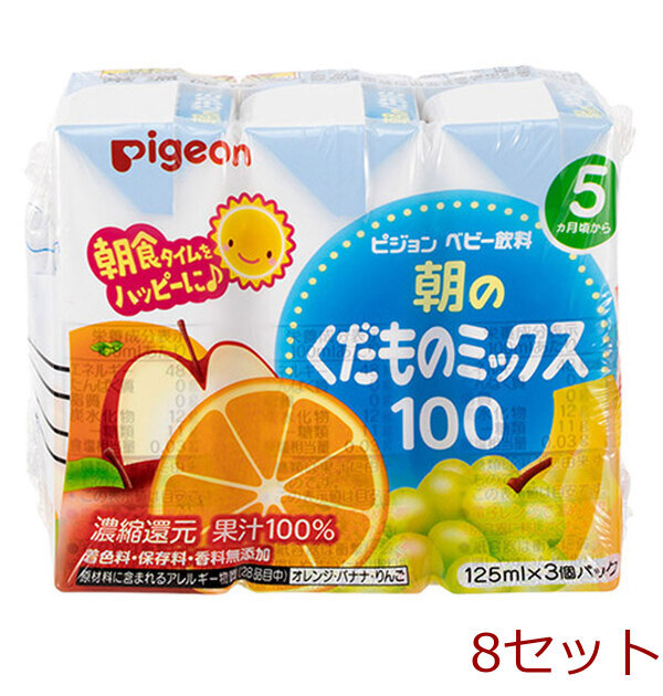 - ピジョン 紙パックベビー飲料 朝のくだものミックス100 125mL×3個パック 8セット
