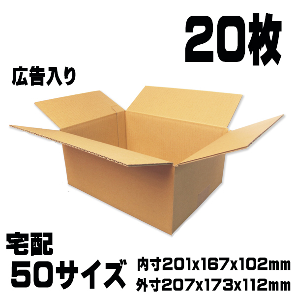 - 【20枚】宅配 50サイズ 段ボール 広告入り 梱包 発送 ダンボール箱 宅急便 ゆうパック 配送 オークション フリマ