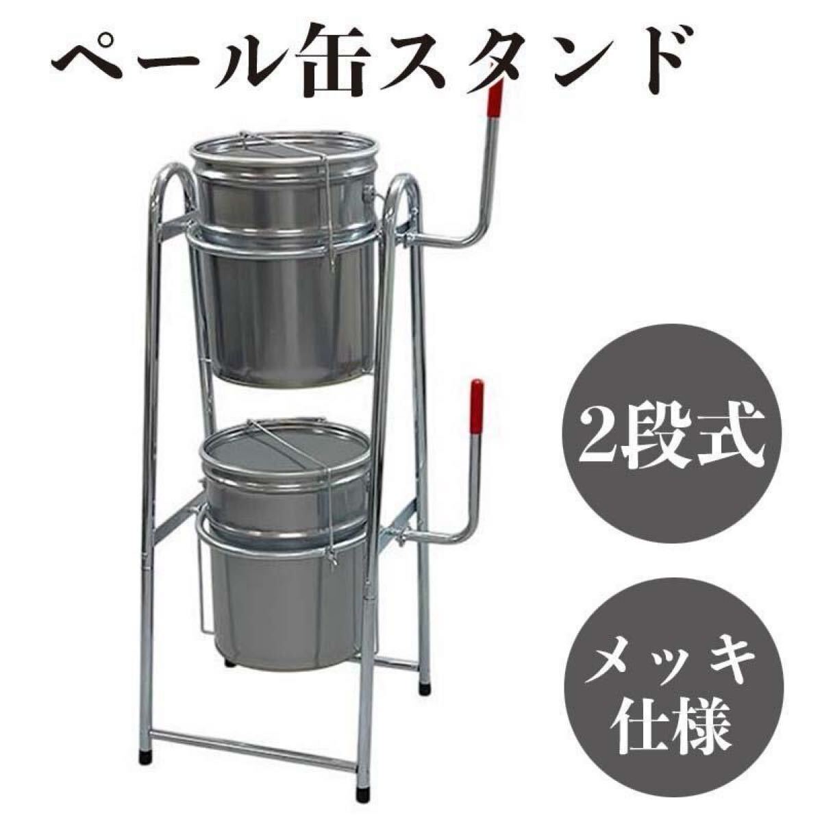 - ペール缶スタンド 2段式 メッキ仕様 オイル缶 ハンドル ストッパー付 4702