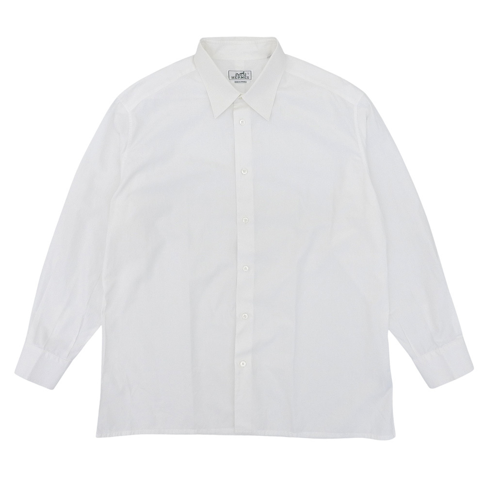 - 美品 HERMES エルメス セリエボタン ボックスカット シャツ トップス メンズ コットン100% ホワイト 43/17