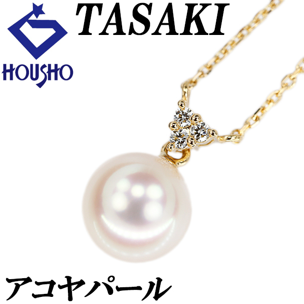 > タサキ 田崎真珠 アコヤ真珠 ネックレス ダイヤモンド K18イエローゴールド TASAKI 送料無料 中古 宝正 902642
