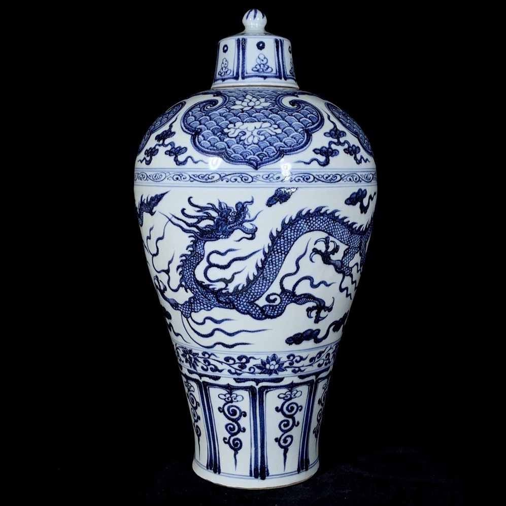 - 磁器 元時代 青花龍紋梅瓶・花瓶 秘蔵 47cm古陶磁器 陶芸 唐物 古賞物 時代物 骨董品 古置物 極細工 中国磁器 古美味 中国古玩921
