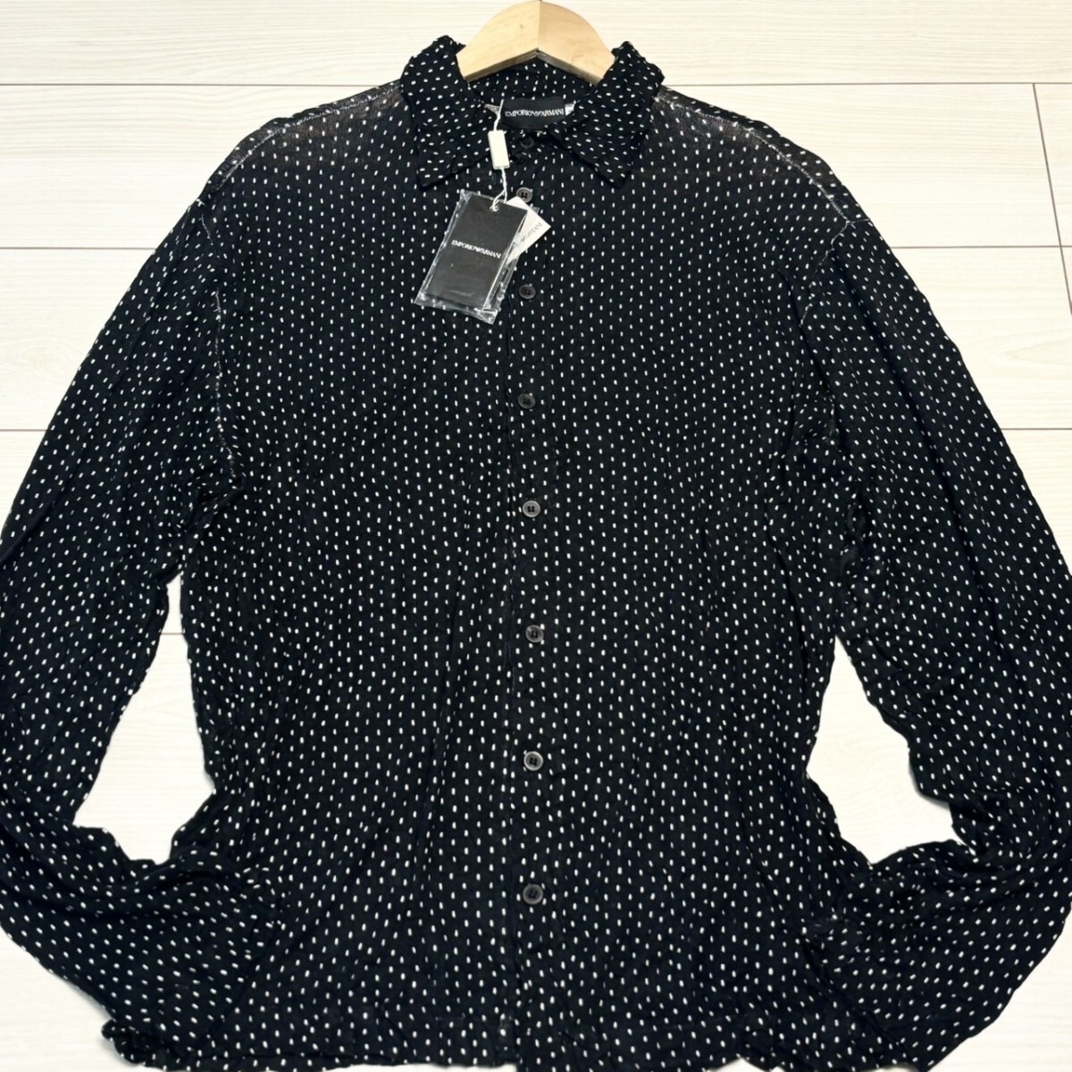 > 未使用級/Lサイズ●エンポリオ アルマーニ EMPORIO ARMANI シャツ 長袖 トップス ドット シルク ブラック メンズ