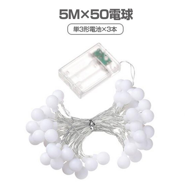 > LEDストリングライト 50電球 乾電池式 5M バルブボール ワイヤーライト 電飾 イルミネーションライト テント飾り DIY 室内屋外 TTL5M50