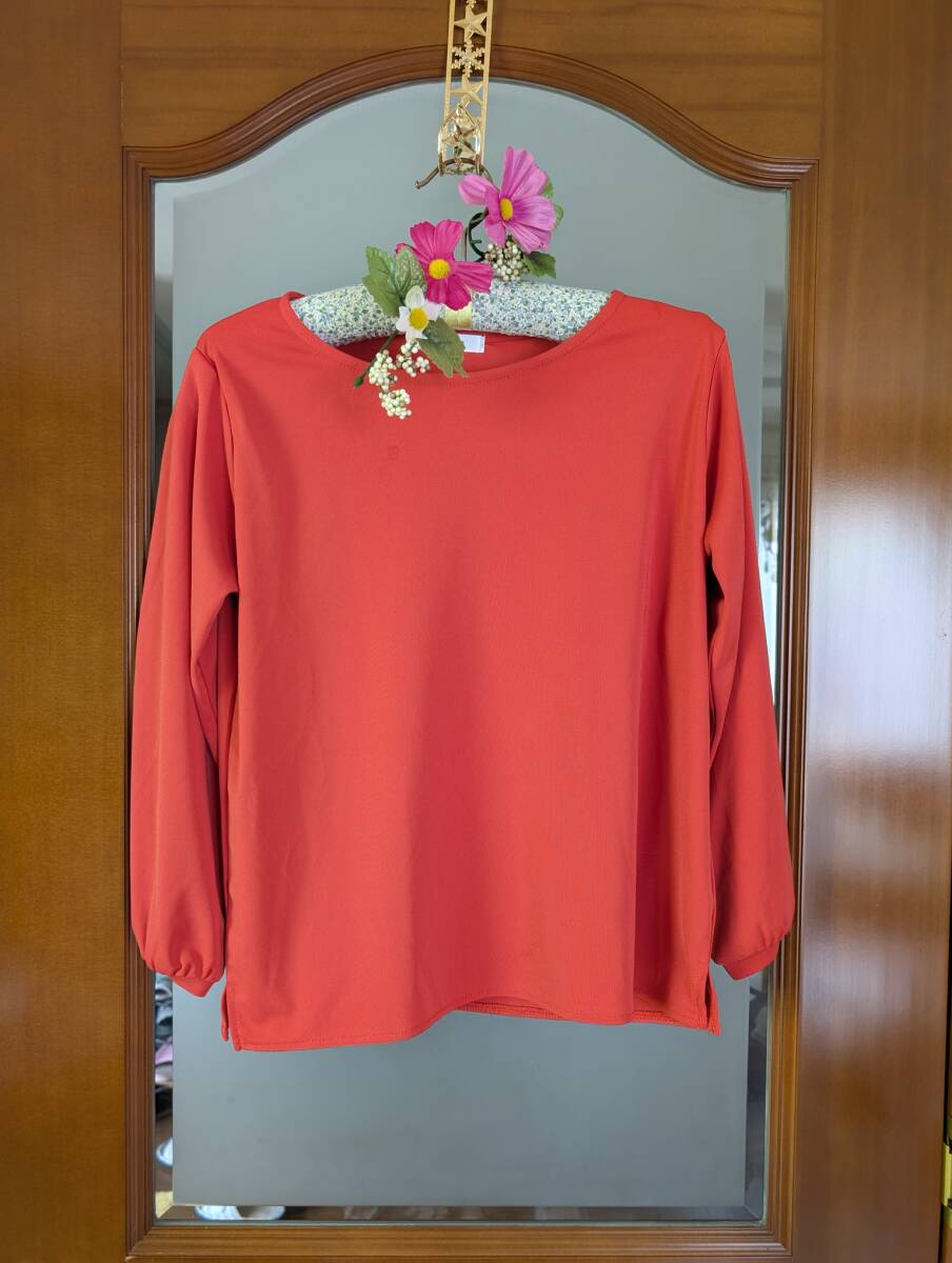 - 【BACK NUMBER】バックナンバー 花柄レース袖 テラコッタ色 カットソー トップス フリー ☆彡