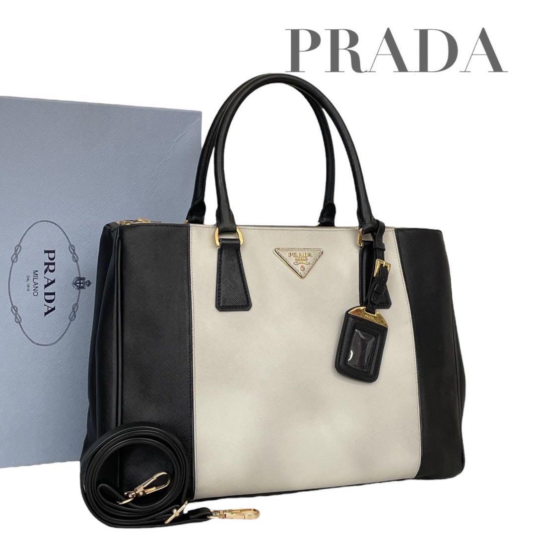 - 超希少 プラダ サフィアーノ ガレリア 三角ロゴ バイカラー 2way 4199
