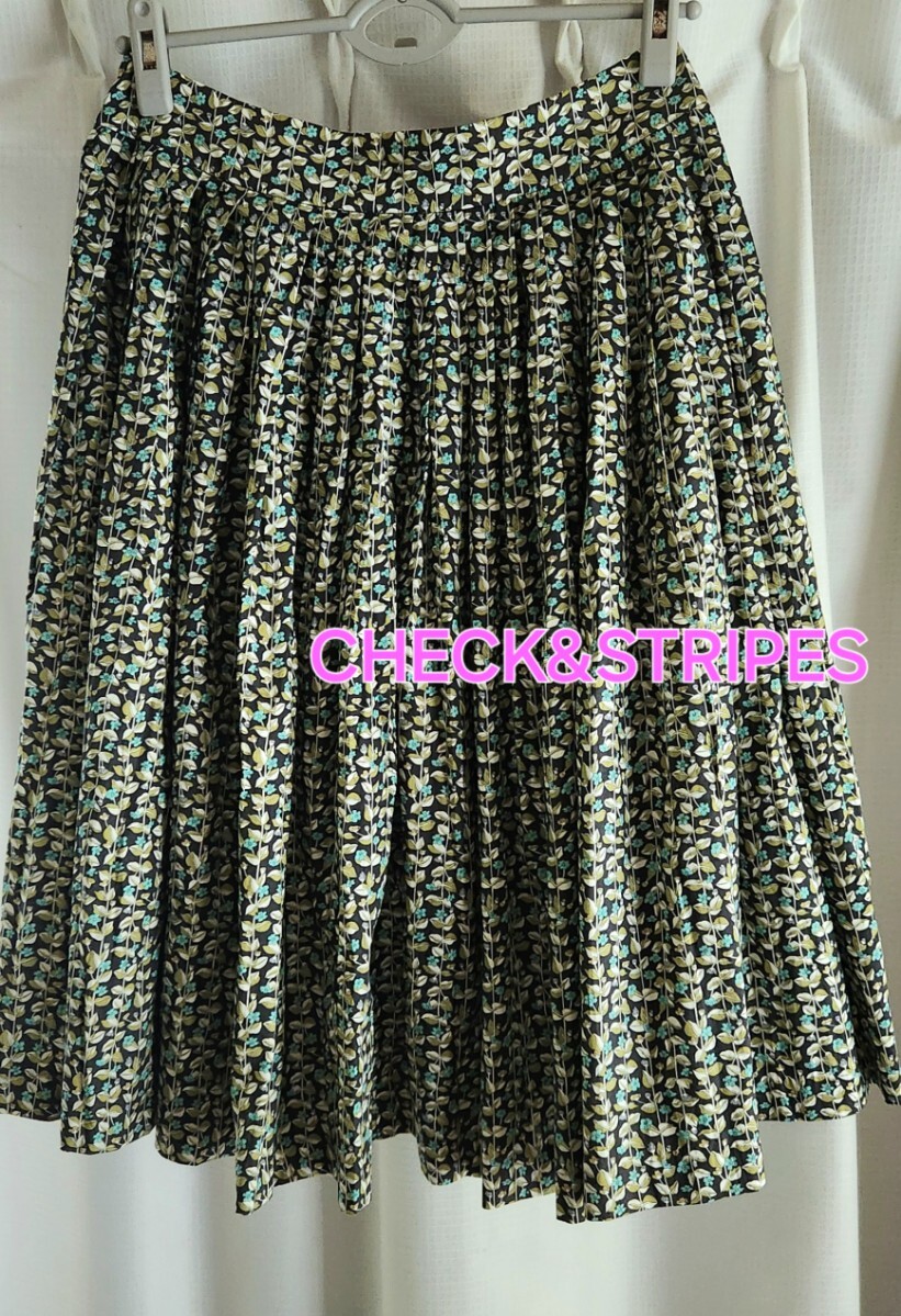 - 未使用レベル CHECK&STRIPE ボリューミーなコットンスカート 小花 ひざ丈