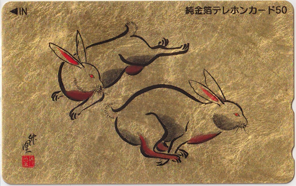 - =卯 兎= 「純金箔〜二匹」販売テレカ #w